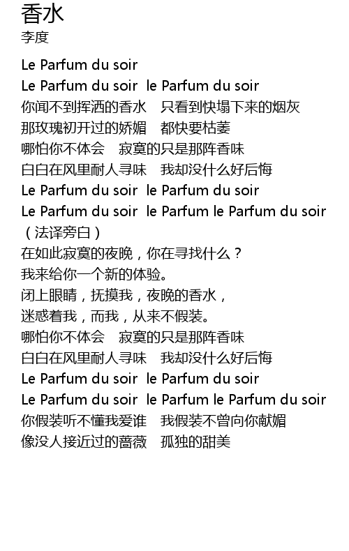 | [00:48.06] | Le Parfum du soir le Parfum du soir |