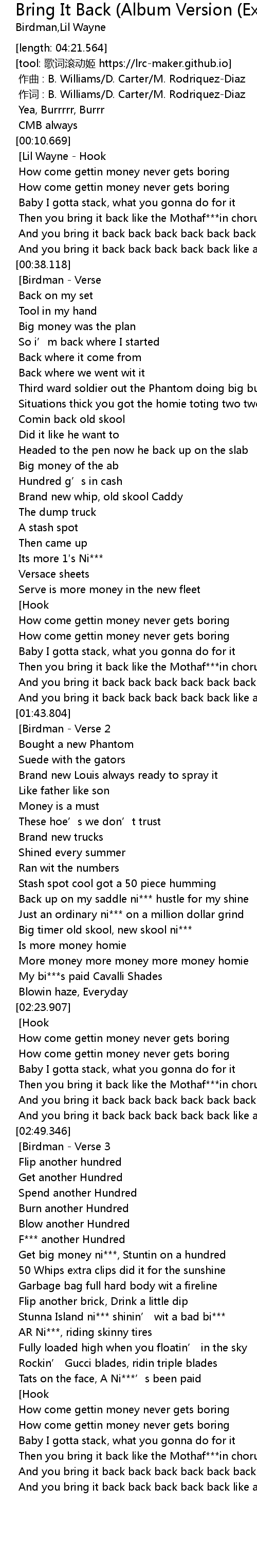 | [03:48.912] | And you bring it back back back back back like a motherf***in chorus |
