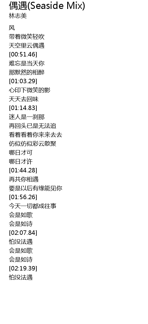 | [01:33.38] | 仿似仿似彩云散聚 |