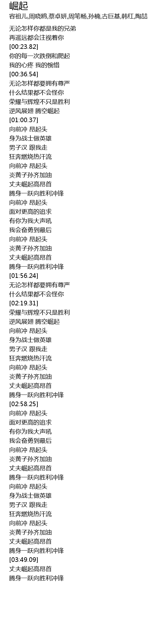 | [03:23.19] | xiàng qián chōng áng qǐ tóu |
