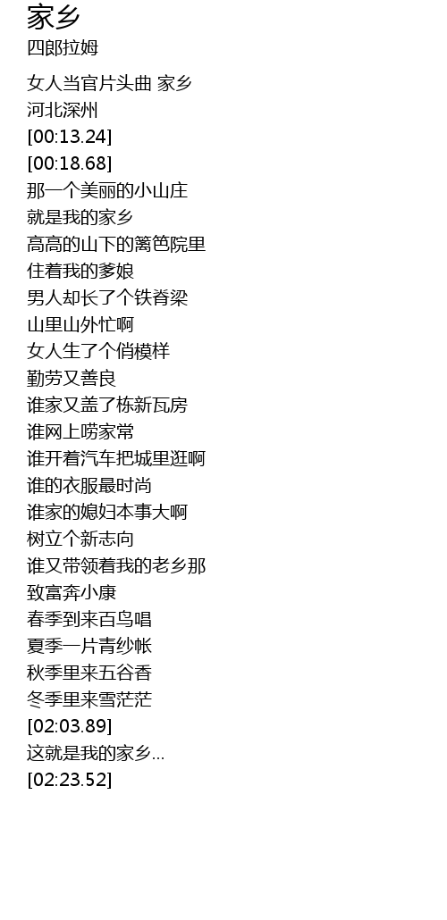 | [00:04.18] | 女人当官片头曲 家乡 |