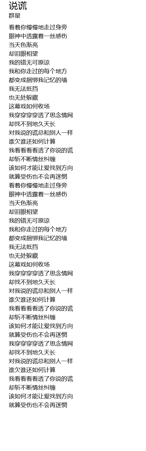 | [04:09.000] | 我看看看看透了你说的谎 |