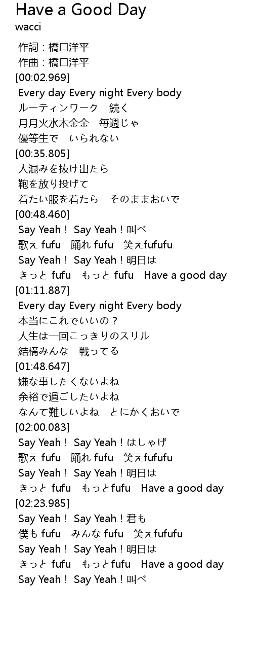 | [02:18.506] | きっと fufu もっとfufu Have a good day |
