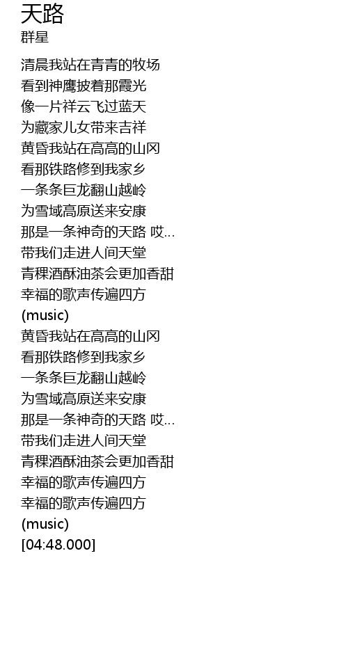 | [03:41.000] | 那是一条神奇的天路 哎… |
