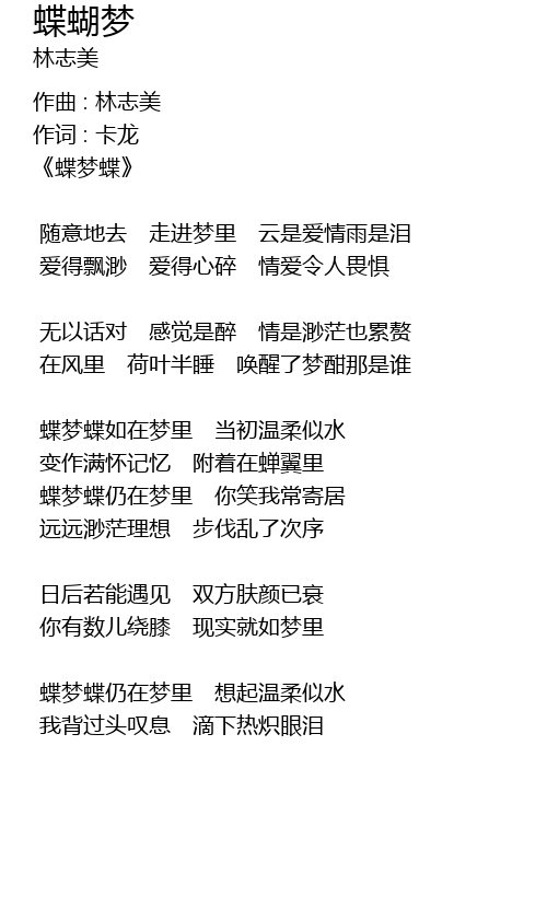 | dié mèng dié réng zài mèng lǐ xiǎng qǐ wēn róu shì shuǐ | |