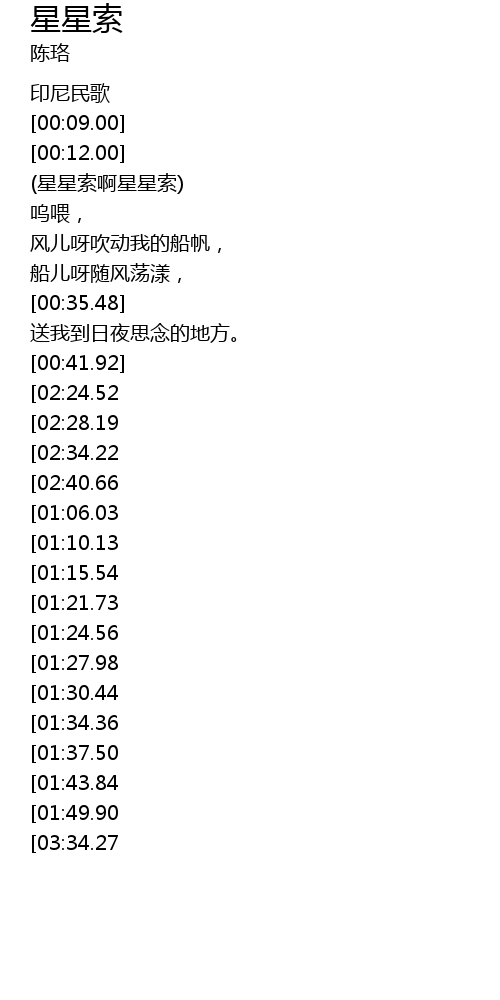 | [00:14.89] | (星星索啊星星索) |