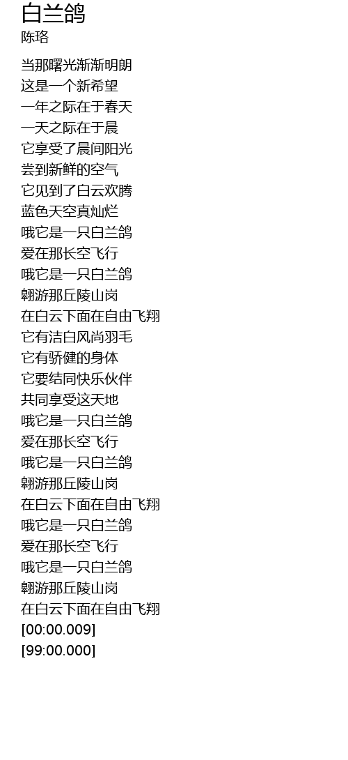 | [01:48.31] | 哦它是一只白兰鸽 |