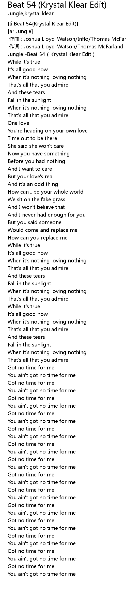 | [00:00.361] | Jungle -Beat 54(Krystal Klear Edit) |