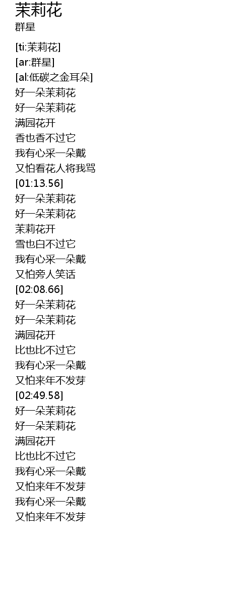 | [01:40.01] | 好一朵茉莉花 |