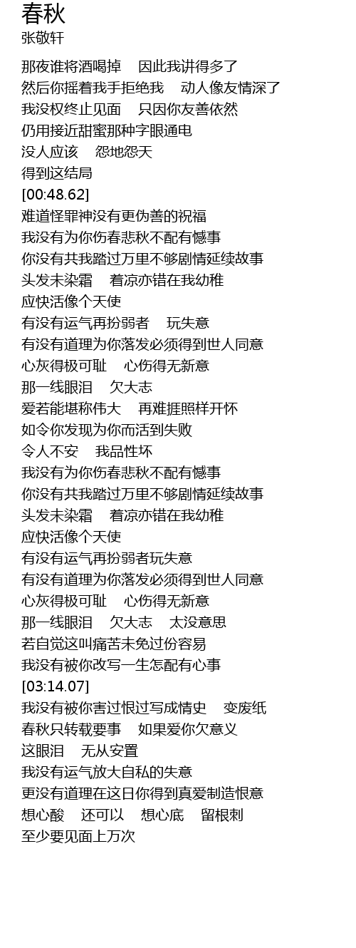 | [03:21.63] | 春秋只转载要事 如果爱你欠意义 |