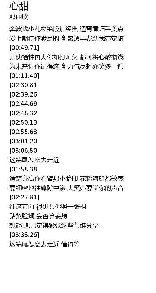 | [00:41.71] | 爱上期待你满足的脸 累透再费劲我亦觉甜 |