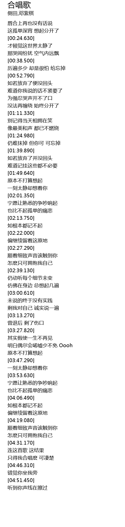 | [04:40.040] | 只得我合唱麽 可凄楚 |
