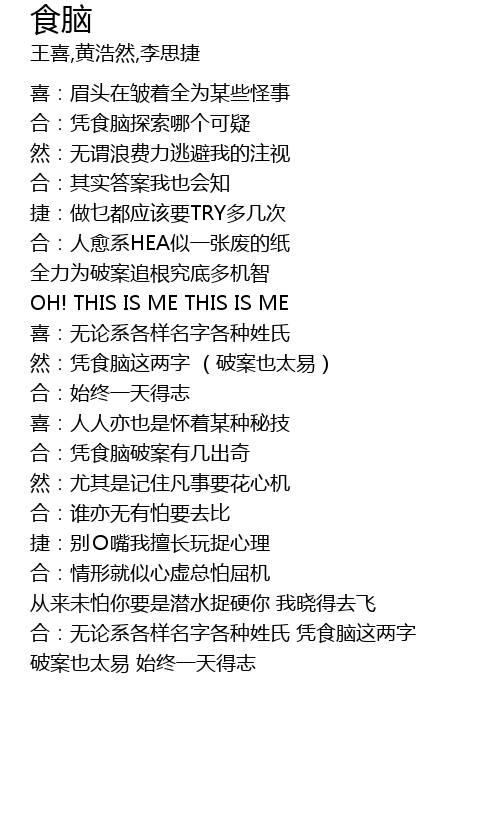 | 合:无论系各样名字各种姓氏 凭食脑这两字 | |