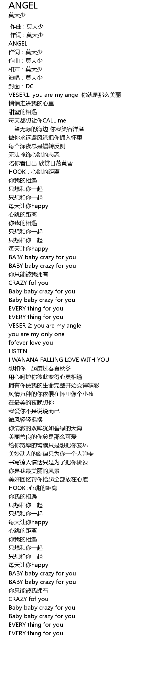 | [01:17.933] | Baby baby crazy for you |