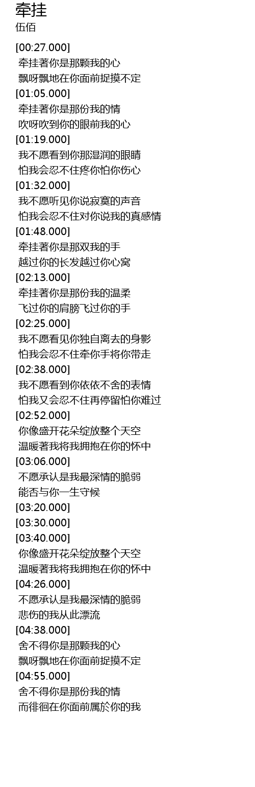 | [00:54.000] | 牵挂著你是那颗我的心 |
