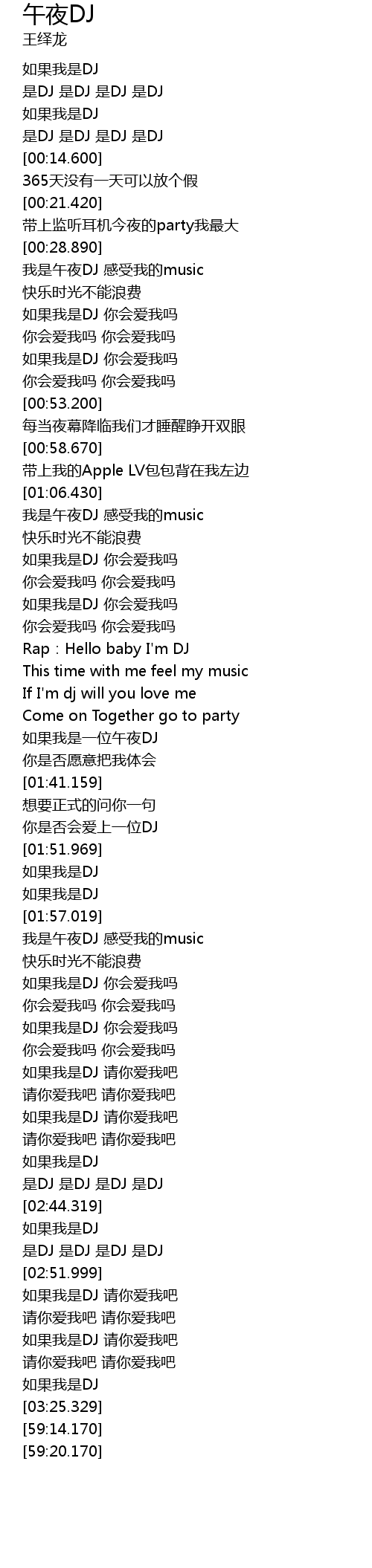 | [01:38.379] | rú guǒ wǒ shì yī wèi wǔ yè DJ |