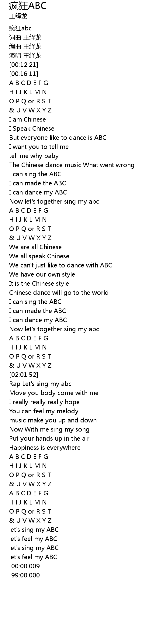 | [00:01.03] | 疯狂abc |