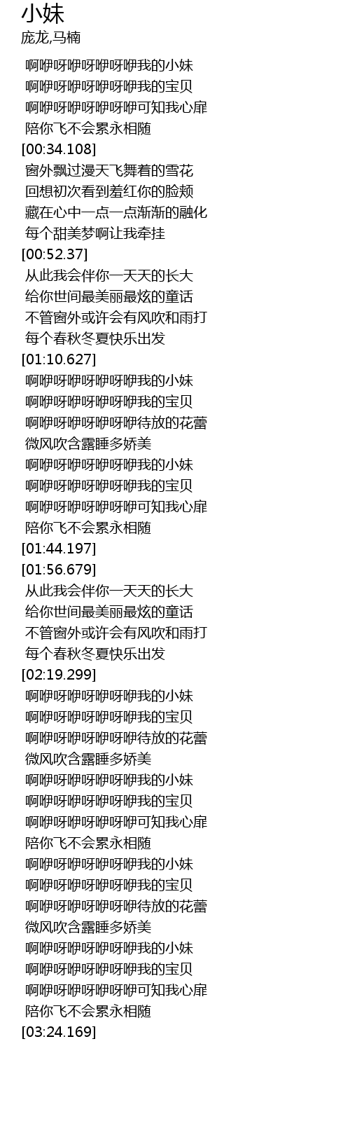 | [02:36.99] | 啊咿呀咿呀咿呀咿我的小妹 |