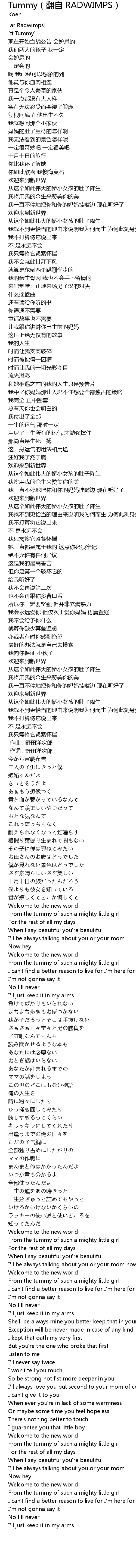 | [00:01.000] | 作词 : 野田洋次郎 |