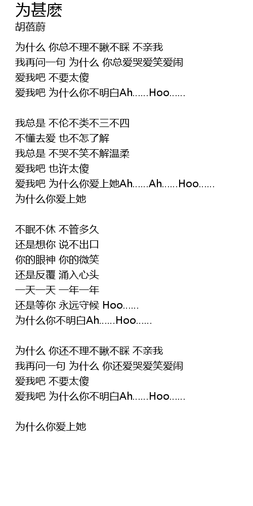 | ài wǒ ba wèi shí me nǐ bù míng bái Ah Hoo | |