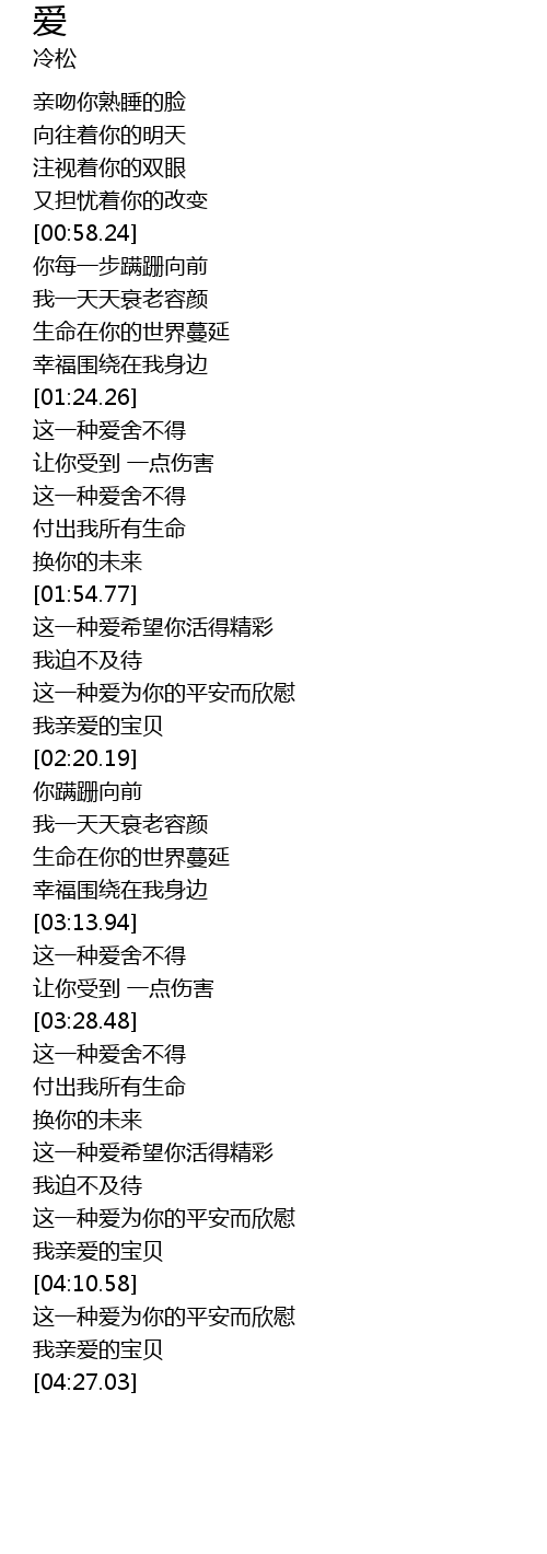 | [04:18.56] | 我亲爱的宝贝 |