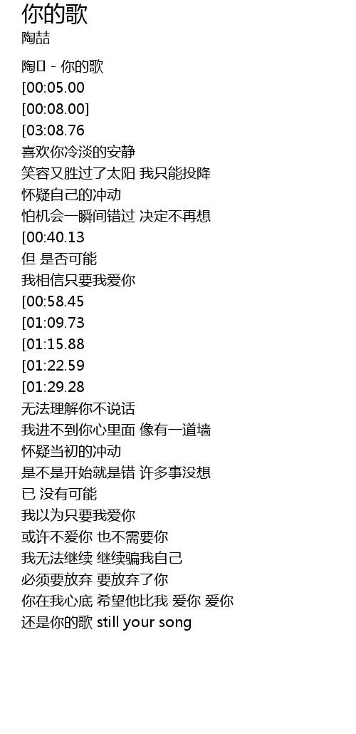 | [00:02.00] | 陶� - 你的歌 |