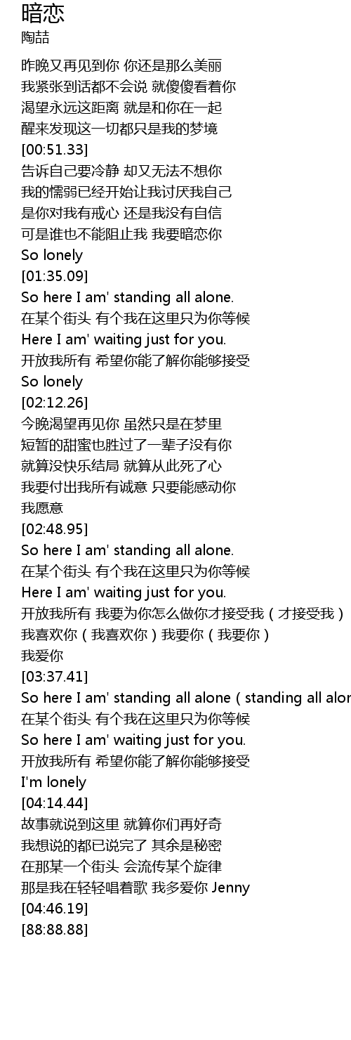 | [04:34.68] | 那是我在轻轻唱着歌 我多爱你 Jenny |