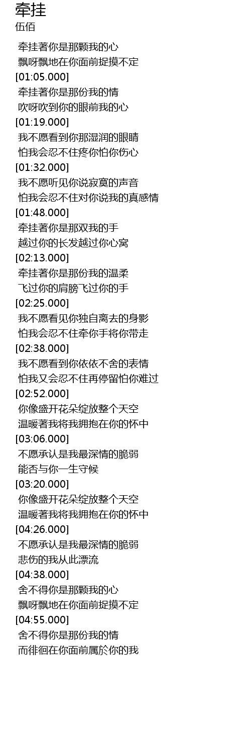 | [00:54.000] | 牵挂著你是那颗我的心 |