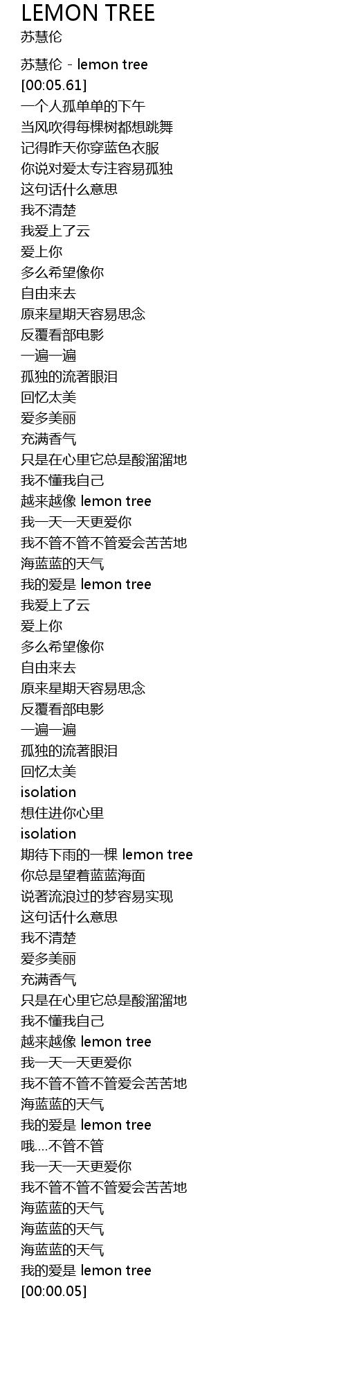 | [00:02.34] | su hui lun lemon tree |