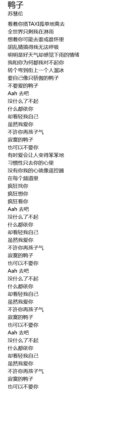 | [00:47.380] | 要自己像只骄傲的鸭子 |