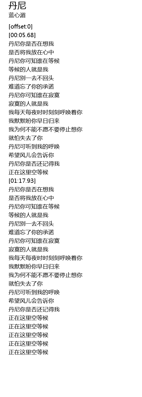 | [00:36.83] | 丹尼你可知谁在寂寞 |
