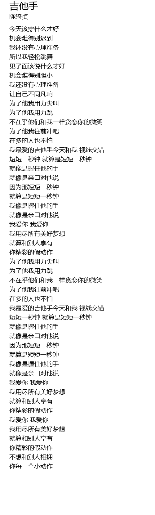 | [00:37.700] | 我最爱的吉他手今天和我 视线交错 |