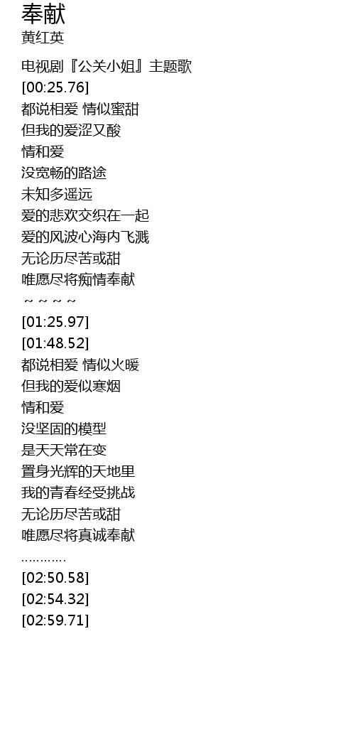 | [02:38.64] | 唯愿尽将真诚奉献 |