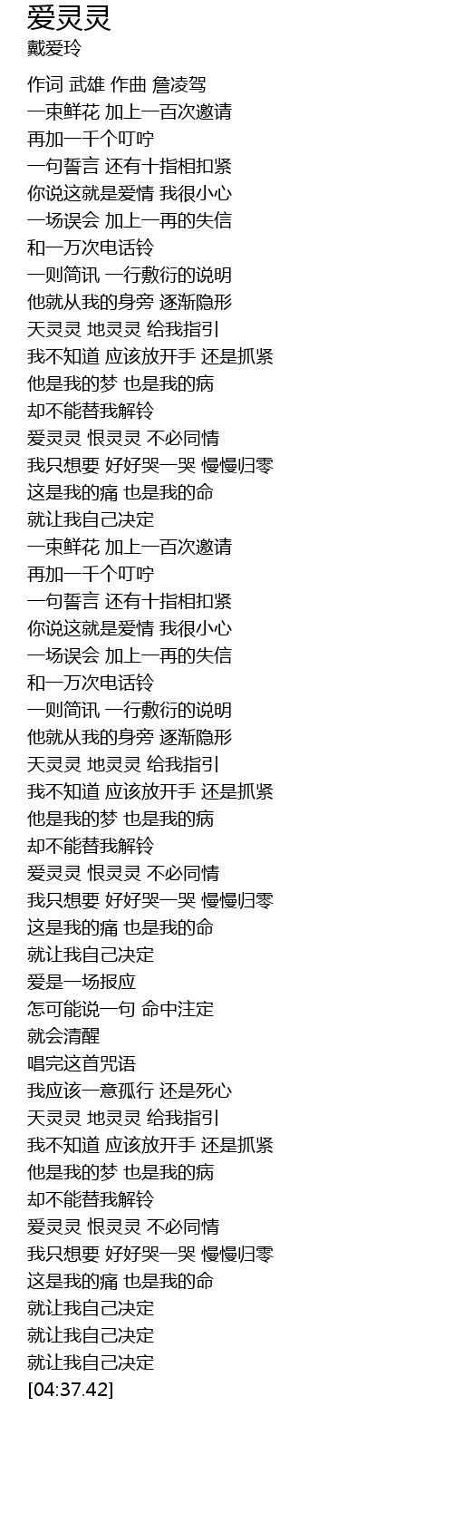 | [04:09.27] | 爱灵灵 恨灵灵 不必同情 |