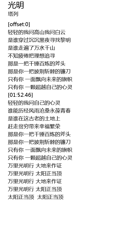 | [03:20.34] | wan li guang ming xing tai yang zheng dang ding |