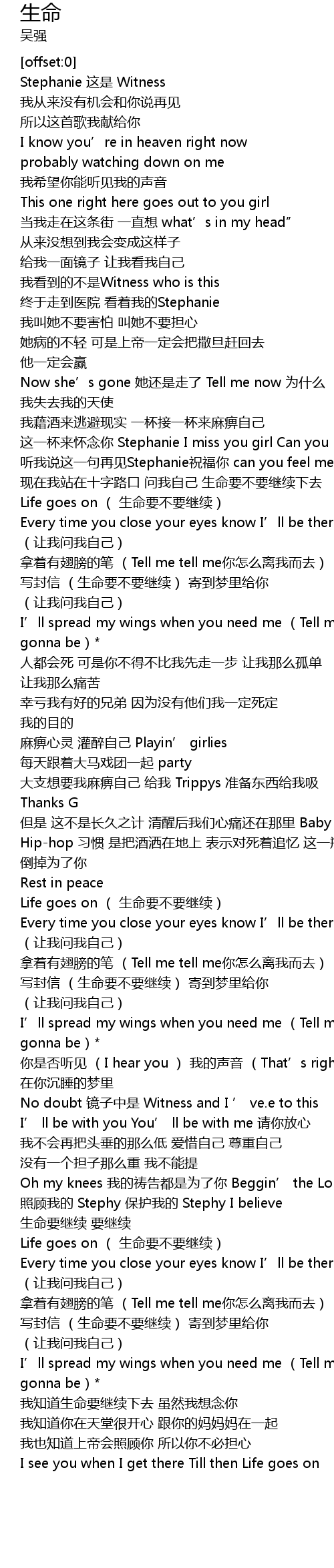 | [01:16.13] | Life goes on sheng ming yao bu yao ji xu |