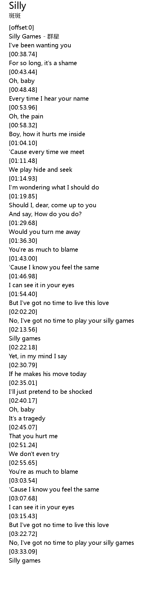| [03:24.59] | No, I' ve got no time to play your silly games |