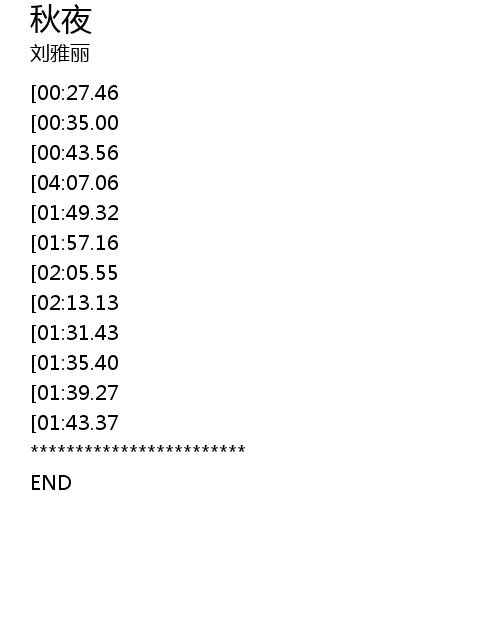 | [03:43.22][00:27.46] | 我爱夜 我爱夜 |