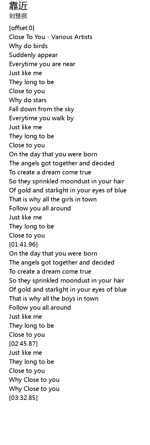 | [02:41.95] | Close to you |