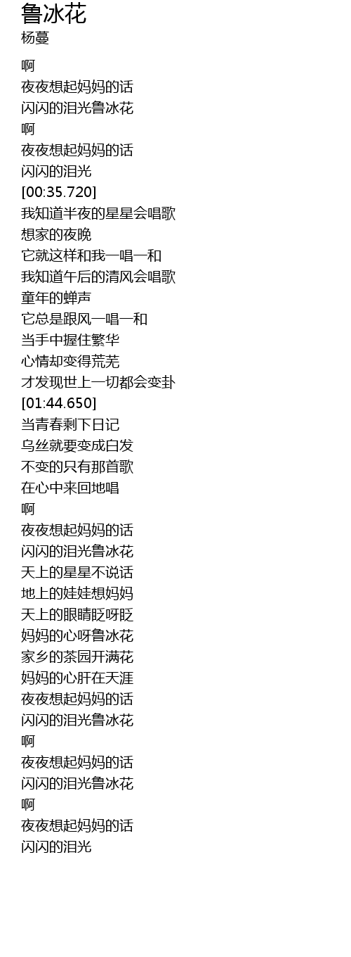 | [02:33.860] | 妈妈的心呀鲁冰花 |