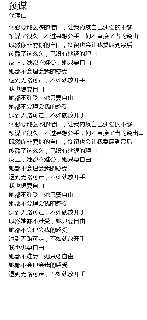 | [00:31.998] | 预谋了很久,不过是想分手,何不直接了当的说出口 |