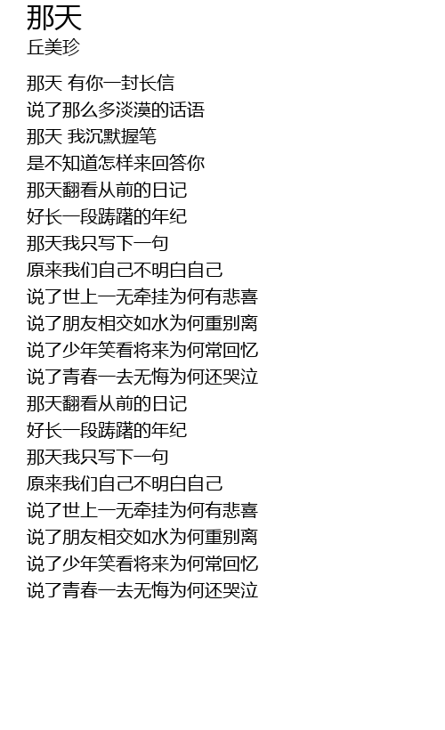 | [01:02.290] | nà tiān wǒ zhǐ xiě xià yī jù |
