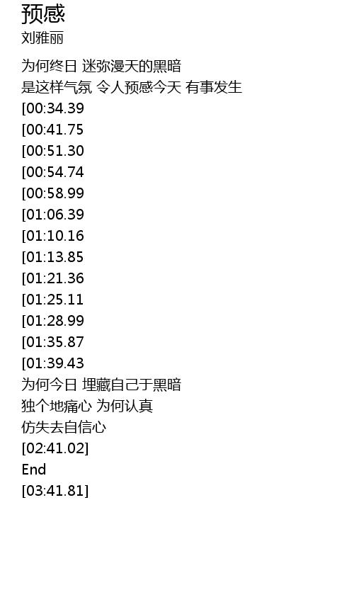 | [02:17.28][00:41.75] | 让跌荡情绪再兴奋 每一分钟也没法定神 |