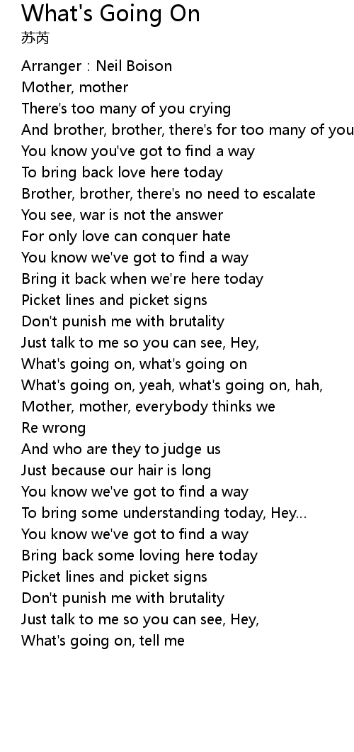 | What' s going on, what' s going on | |