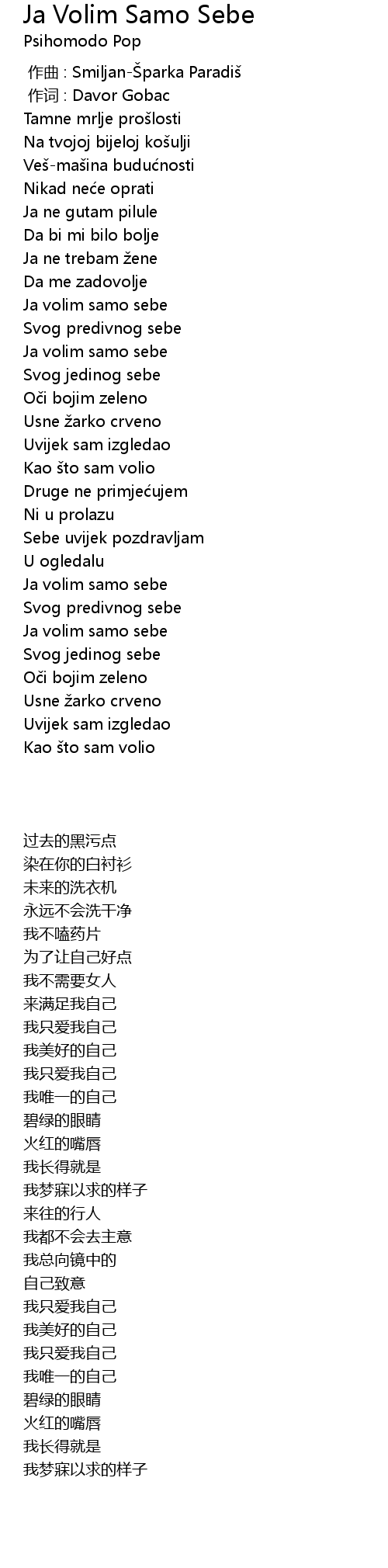 | [02:22.82] | Ja volim samo sebe |