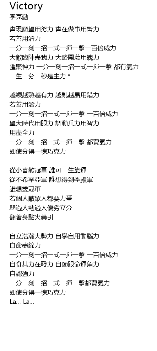 | 從小喜歡冠軍 誰可一生靠運 | |