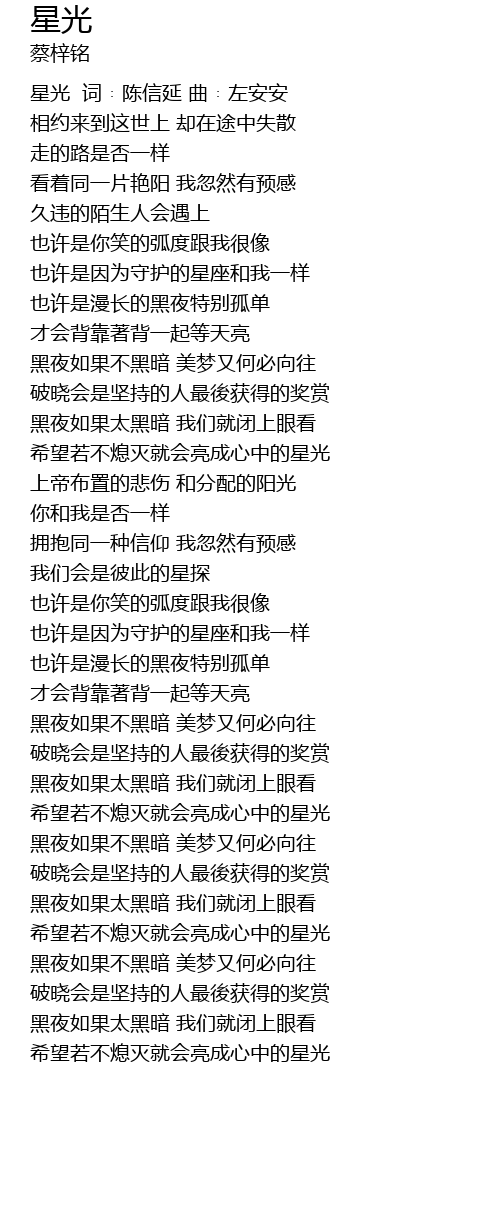 | [00:00.00] | 星光 词﹕陈信延 曲﹕左安安 |