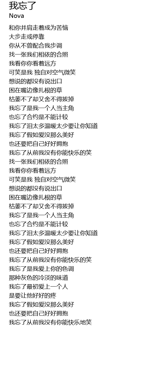 | [01:20.980] | wǒ wàng le jiǎ rú ài méi nà me měi hǎo |