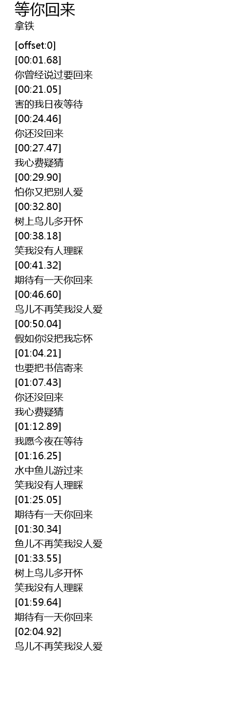| [02:01.42] | 期待有一天你回来 |