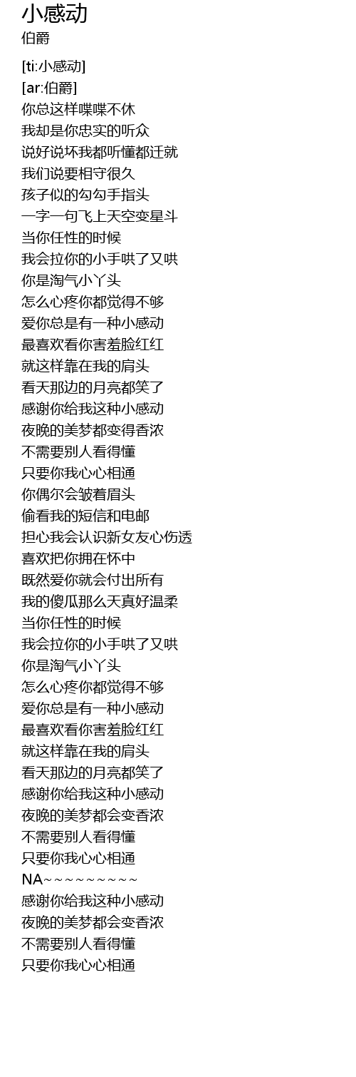 | [02:26.161] | ài nǐ zǒng shì yǒu yī zhǒng xiǎo gǎn dòng |